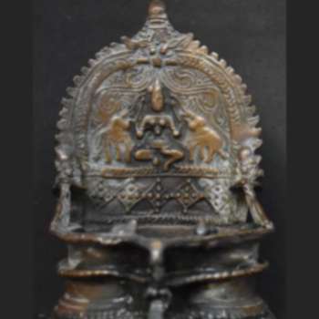 The archival essay documents and analyzes the aesthetic qualities of votive oil lamps from the coastal city of Cochin, highlighting their intricate cast-metal forms and devotional use in South Indian temples.