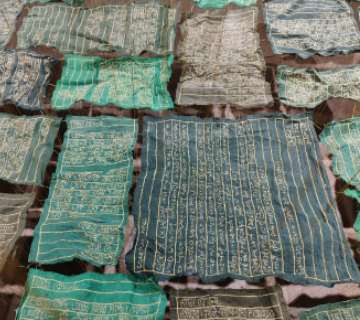 Chakrabarti’s latest show, Karvat, brings together her long fascination with the iconic Urdu story about queer desire, and her own engagement with cloth and lovers in domestic settings.
